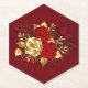 The composition of two artistically painted red roses and one golden rose, decorated with gold, jewel leaves on textured background.