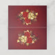 The composition of two artistically painted red roses and one golden rose, decorated with gold, jewel leaves on textured background.