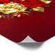 The composition of two artistically painted red roses and one golden rose, decorated with gold, jewel leaves on textured background.