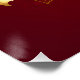 The composition of two artistically painted red roses and one golden rose, decorated with gold, jewel leaves on textured background.