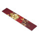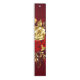 The composition of two artistically painted red roses and one golden rose, decorated with gold, jewel leaves on textured background.
