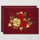 The composition of two artistically painted red roses and one golden rose, decorated with gold, jewel leaves on textured background.