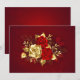 The composition of two artistically painted red roses and one golden rose, decorated with gold, jewel leaves on textured background.