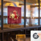 The composition of two artistically painted red roses and one golden rose, decorated with gold, jewel leaves on textured background.