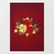 The composition of two artistically painted red roses and one golden rose, decorated with gold, jewel leaves on textured background.