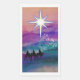 Beautiful watercolor scene with the silhouette of the Three Kings journeying to the new born Jesus. Religious Christmas card proclaiming the birth of Christ.