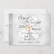 This Save the Date wedding announcement feature a white three leaf clover on a grungy grey background. The text is grey, names are dark green with an orange ampersand. It's great for any wedding announcement and perfect for Irish and St. Patrick's Day weddings. ^