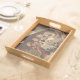 This is a well made, sturdy wooden tray with a flawless black finish and lovely map on the tray surface. It is both vintage & modern at the same time. Looks exactly like the photo; does not disappoint. So nice to find something of quality individually made and not the mass-produced 'shabby chic' merchandise seen in stores. I am so pleased to be able to give this to my college-age niece for her birthday. This can be used as a tray to hold jewelry or toiletries, or hung on the wall as art. The map surface is sealed (it is slightly shiny) so would be moisture resistant. It is well worth the asking price but I was able to apply a sale code as well. Very happy with my purchase. Map is crisp & clear and sealed with a water-resitant finish.
