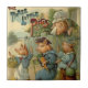 Vintage illustration classic children's fairy tale and nursery rhymes story book image The Three Little Pigs.from a vintage postcard, German ephemera. The brothers are leaving the house to build their homes of straw, wood and bricks, mama pig is sad, weeping and waving goodbye.
