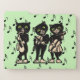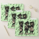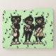 This set of three file folders are light green with black music notes on the outside and images of three musical black cats playing their instruments that include a fiddle, saxophone, and a guitar on each folder.
