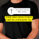 A simple modern minimalistic design with three nails forming a Christian Cross in black with the name of Church and the Greeter's name. Black and white.