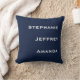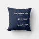 Three Names Navy Blue and White Square Throw Pillow