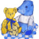 This cheerful still life teddy bear picture is painted in watercolor. The three cute teddies are sitting on a blue and white check picnic cloth. The three little bears are from my own teddy bear collection, the blue bears name is "Charlie bear" the bigger yellow bear is called "small Barbara Bear" and the little teddy.... well...I didn’t have a name for him, but I do remember that he only had one eye. The cute still life teddy bear watercolor painting is a unique picture and definitely stands out. If you're looking for a cute place mat for the children this should be just the job. This product can be customized with your own text.