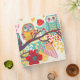 Cute binder with three owls on a branch. Bright colors of gold, red and turquoise blue