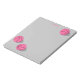 This basketball themed notepad for girls features 3 pink basketballs that appear to have stopped rolling right on the notepad - basketball player's name is customizable on a light gray background - by katz_d_zynes