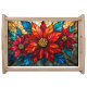 Three Poinsettia Blossoms Stained Glass Style Serving Tray