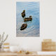 A photograph of three ducks on a pond.