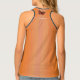 This woman's racer back tank tee shirt is bright orange with three brownish orange monarch butterflies with pretty markings on their wings on the front and one on the upper back.