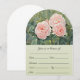 An invitation with three pretty pink roses notifies your guests of the date, time and location. A "note" line at the bottom gives space for those extra details such as "registry" or "hosted by".
