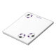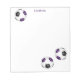 This fun soccer themed notepad features 3 tiny, randomly arranged soccer balls that have purple, black & white panels - font style is for a girl but can be customized for a boy - personalize with the athlete's / fan's / coach's name - by katz_d_zynes