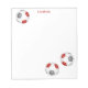 This fun soccer themed notepad features 3 tiny, randomly arranged soccer balls that have red, gray & white panels - font style is for her but can be customized for him - personalize with the athlete's / fan's / coach's name - by katz_d_zynes