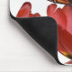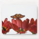 Three red tulips and a monarch butterfly against mouse pad