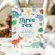 Three Rex Blue Boy Dinosaur Boho 3rd Birthday Invitation