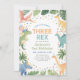 Invite friends and family to celebrate your little one's 3rd birthday with this dinosaur themed invitation.