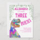 Three Rex Girls Dinosaur Birthday Party Invitation