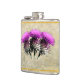Why should flasks be ordinary when they can be handsome like this? This flask features three Scottish thistles, the pink flower of Scotland.