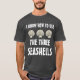 My 11 yo wore adult XL (5’7” 165#). The 8yo is small framed. She wore adult small and tied it in the back. Grandma wore adult large with long sleeve shirt underneath. Tall girl adult medium. Dark haired male adult large. Good quality dark Heather gray, Gildan brand shirt. -it was next up from basic choice and cost about $20 per shirt. Not too thick or thin. Washed and dried well, no major shrinkage. Not see-through. Can wear a bra under it fine. Screen print is just as shown and well done, front and back.