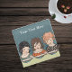 This glass drink coaster has a vintage image of a three little sisters with cute chubby cheeks eating their soup together. Customize the text with the template.