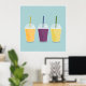 Three smoothies in cups looking very colourful and ready to drink. This design looks really effective on these Poster