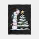 Three Snowmen Are Arranging A Christmas Tree Cute Fleece Blanket