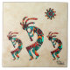 Brighten Your Home with this Unique "One of a Kind "Southwest Kokopelli Ceramic Tile! It Features a Three Kokopelli in Turquoise, Orange and Black Playing the Flute and Dancing Under the Sun...on a Tan Sandstone Background!