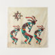 This is a Unique "One of a Kind" Southwest Kokopelli Wall tapestry! It Features Three Southwest Kokopelli in Turquoise, Orange and Black...Playing the Flute and Dancing Under the Sun...on a Tan Sandstone Background!