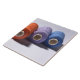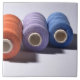 Three Spools of Thread or Yarn: orange, purple, and blue.