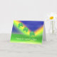 Card with my design of three four-leaf clovers sliding down bright rainbows with text "Happy St. Patrick's Day!"