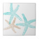 Three Starfish Teal and Tan Ceramic Tile