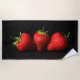 Three Strawberries On Black - Three red strawberries in a horizontal row photographed against a simple black background.