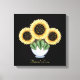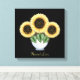 Three sunflowers with heart leaves in a vase on black Canvas Print. A Gift made with love and kindness is ideal for everyone!