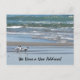 A watercolor of three common terns on a beach, with sand and waves in the background, announce that you have a new address on this Postcard. The back is left blank for you to customize with your details.