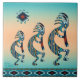 Brighten Your Home with this Unique "One of a Kind" Southwest Kokopelli Ceramic Tile! It Features Three Turquoise Southwest Kokopelli Playing the Flute and Dancing Under the Sun on a Turquoise and Orange Sunset Background...with a Turquoise, Gold, Rust and White Border!