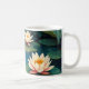 Three pink and white waterlilies and pads in an art nouveau style create a beautiful mug that's perfect for anyone who loves flowers and nature.