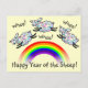 Three Whee Sheep Leaping a Rainbow Happy Year Postcard