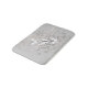 Bath mat with my pretty vector design of three white and black butterflies flying over airy bubbles of gray and white with touches of peach, on a gray background.