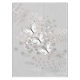 Pretty vector design of three white and black butterflies flying over airy bubbles of gray and white with touches of peach, on a gray background.