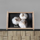 Three White Garlic Cloves Dramatic Black Serving Tray