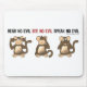 Hear No Evil, See No Evil, Speak No Evil with three monkeys. A common phrase, usually used to describe someone who doesn’t want to be involved in a situation.