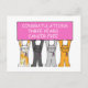 Cartoon cats holding up a large pink sign that says 'Congratulations on three years free from cancer'.